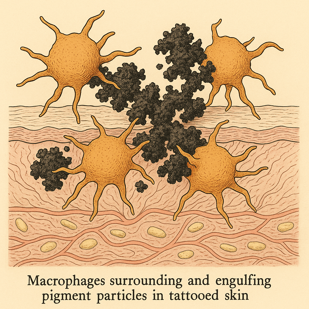 engulf pigment particles, helping the tattoo settle